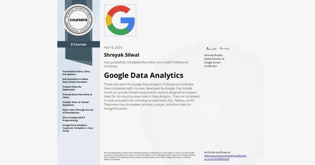 Hi! I’m Shreyak, a data analyst passionate about transforming raw information into strategic insights. With knack for problem-solving, I thrive on uncovering patterns, crafting data-driven narratives, and building solutions that empower smarter decisions. Leveraging tools like R, SQL, Tableau and Excel, I bridge technical precision with business impact — turning complexity into clarity to drive growth and innovation.